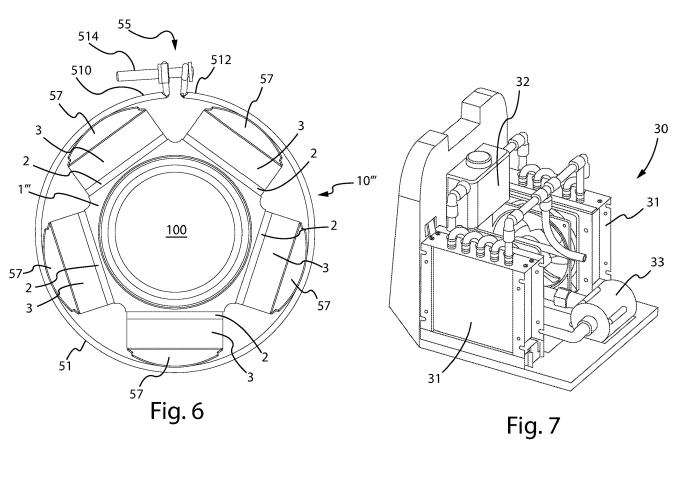 Each cooling cell is paired with a heat sink. One side removes heat from the central body. The other releases it outward. A belt runs around the cooling cells and heat sinks and can be tightened with a tensioning mechanism to keep them pressed against the surface.